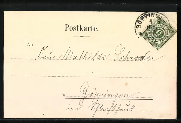 Personenbezogene Daten auf der Rückseite der Karte wurden durch blauen Textmarker unkenntlich gemacht. Die blauen Stellen sind auf die Vorderseite durchgeweicht und wirken sich negativ auf das Postkartenfoto aus