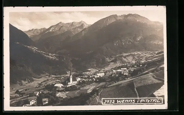 AK Wenns im Pinztal, Totalansicht mit Kirche, Panorama