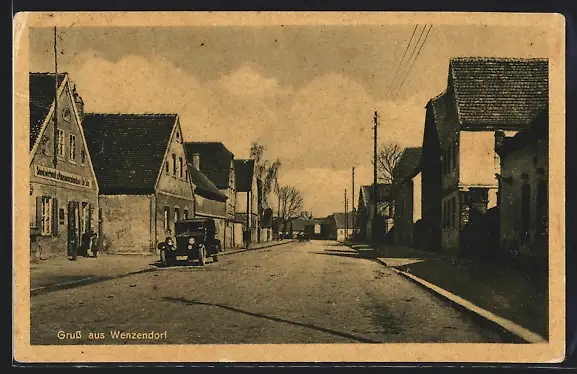 AK Wenzendorf, Strassenpartie im Ort mit Gasthaus Otto Stiller