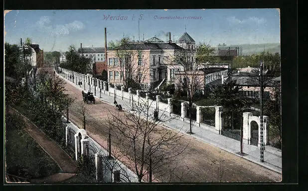 AK Werdau i. S., Crimmitschauerstrasse aus der Vogelschau