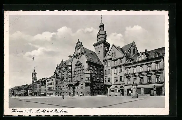 AK Werdau i. Sa., Blick auf das Rathaus am Marktplatz