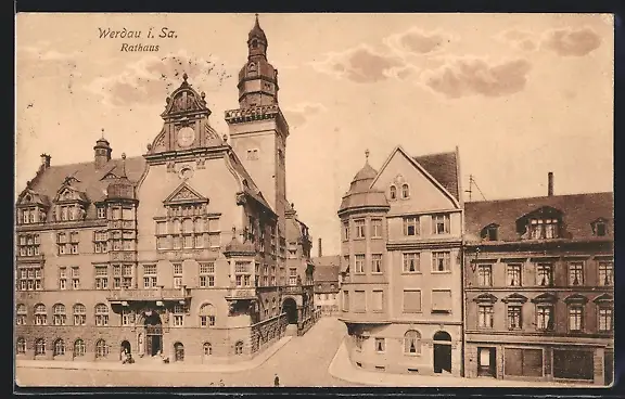 AK Werdau i. Sa., Rathaus mit Strassenpartie