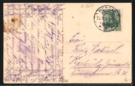 alte Ansichtskarte, gelaufen 1914, Stempelspur, guter Zustand