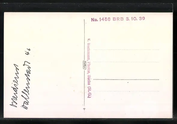 Personenbezogene Daten auf der Rückseite der Karte wurden durch blauen Textmarker unkenntlich gemacht. Die blauen Stellen sind auf die Vorderseite durchgeweicht und wirken sich negativ auf das Postkartenfoto aus