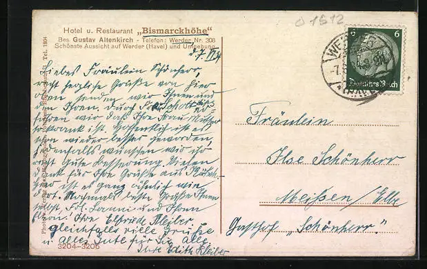 alte Ansichtskarte, gelaufen 1934, guter Zustand