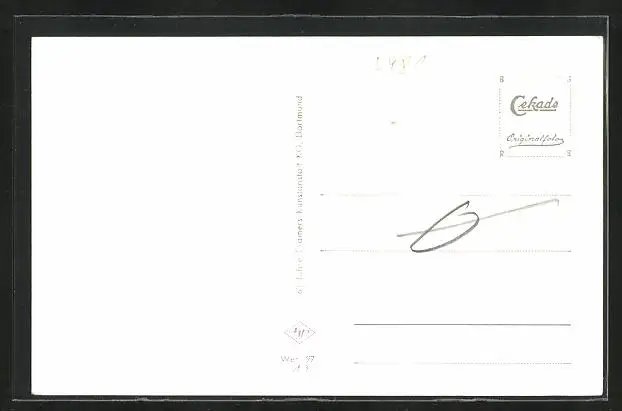 Personenbezogene Daten auf der Rückseite der Karte wurden durch blauen Textmarker unkenntlich gemacht. Die blauen Stellen sind auf die Vorderseite durchgeweicht und wirken sich negativ auf das Postkartenfoto aus