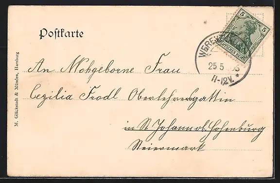 alte Ansichtskarte, gelaufen 1906, guter Zustand