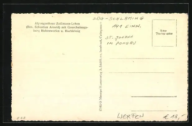 AK Werfen, Alpengasthaus Zaissmann-Lehen mit Gauschulungsburg Hohenwerfen u. Hochkönig