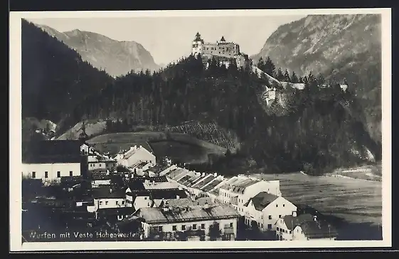 AK Werfen, Ortsansicht mit Veste Hohenwerfen