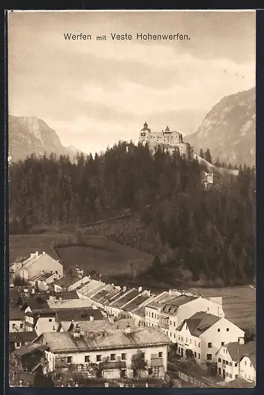 AK Werfen, Ortsansicht mit Veste Hohenwerfen