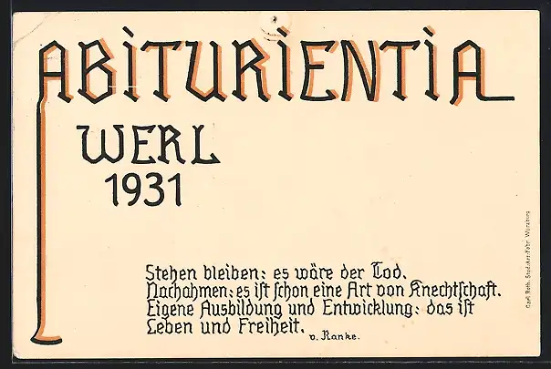 AK Werl, Absolvia 1931, Zitat v. Ranke