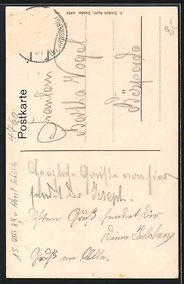 alte Ansichtskarte, gelaufen, Briefmarke entfernt, guter Zustand