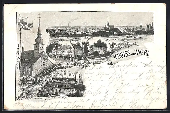 AK Werl, Soolbad, Ursulinen-Stift, Schlossruine, Ortsansicht