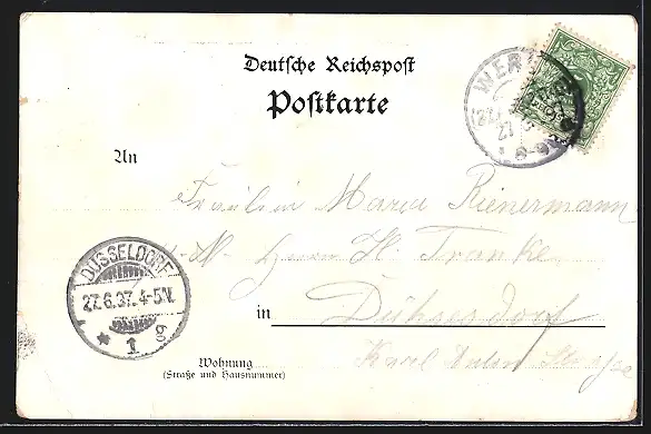 alte Ansichtskarte, gelaufen 1897, Eckknick links oben und rechts unten, guter Zustand