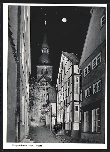 AK Werl /Westf., Propsteikirche bei nächtlicher Beleuchtung