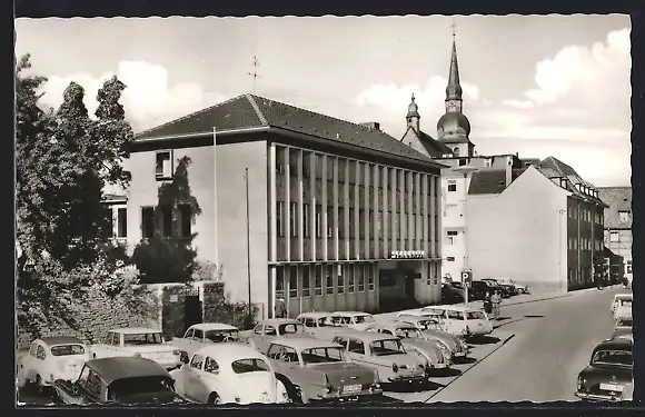 AK Werl /Westf., Strassenpartie mit Kirche, VW Käfer
