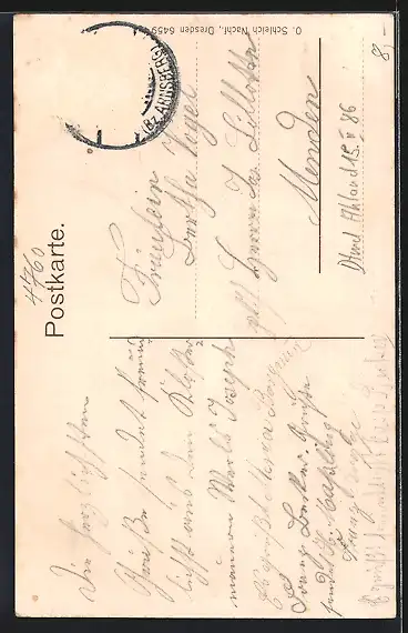 alte Ansichtskarte, gelaufen, Briefmarke entfernt, Stempelspur, Bugspur li. mittig, guter Zustand