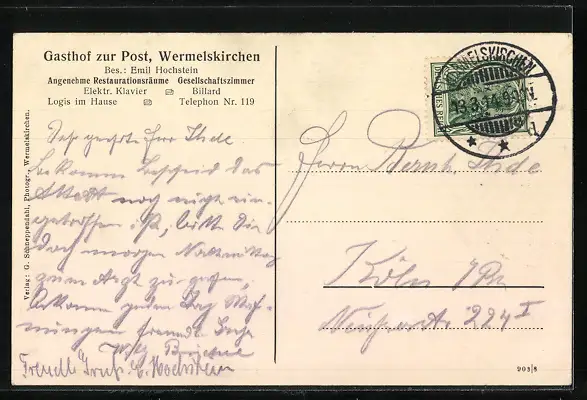 AK Wermelskirchen, Gasthof zur Post von Emil Hochstein, Gaststube