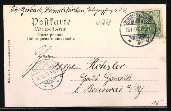 alte Ansichtskarte, gelaufen 1905, guter Zustand