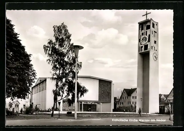 AK Wernau a. N., Kath. Kirche mit Strasse