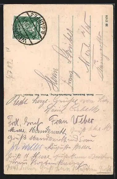 alte Ansichtskarte, gelaufen 1927, Bugspur re. oben horizontal, guter Zustand