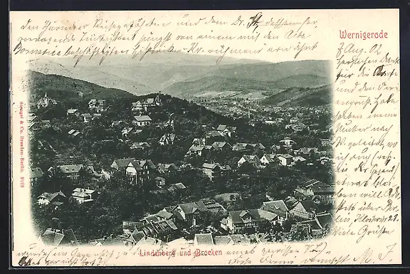 AK Wernigerode, Blick auf Lindenberg und Brocken