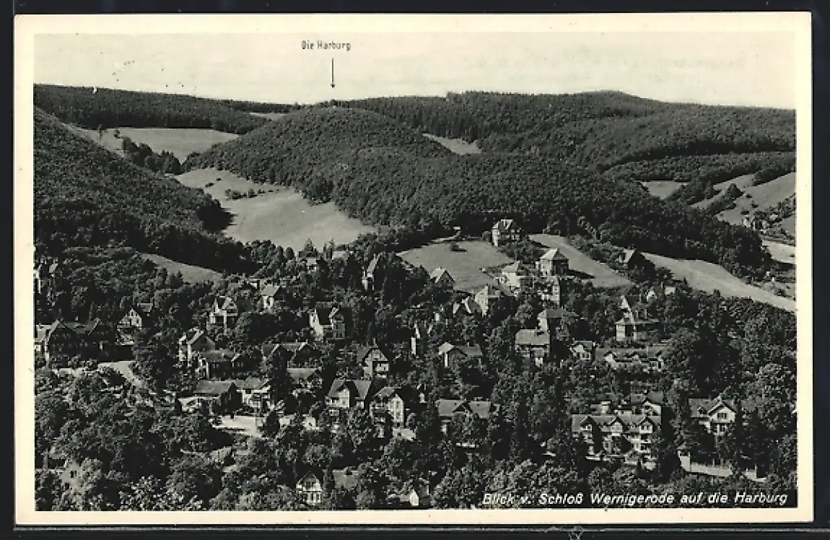 AK Wernigerode, Blick vom Schloss Wernigerode auf die Harburg