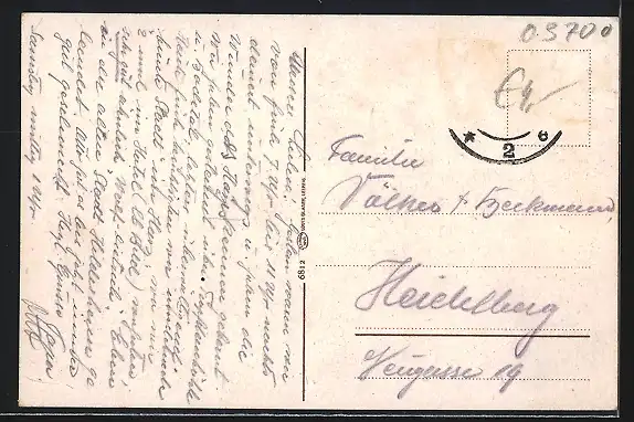 alte Ansichtskarte, gelaufen, Briefmarke entfernt, guter Zustand