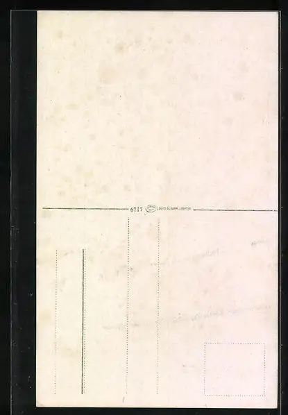 Personenbezogene Daten auf der Rückseite der Karte wurden durch blauen Textmarker unkenntlich gemacht. Die blauen Stellen sind auf die Vorderseite durchgeweicht und wirken sich negativ auf das Postkartenfoto aus
