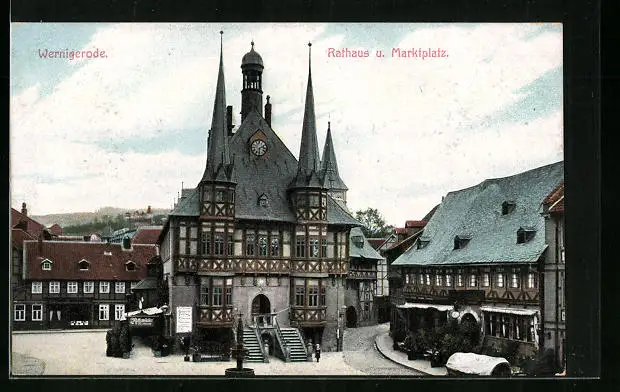 AK Wernigerode / Harz, Rathaus und Marktplatz