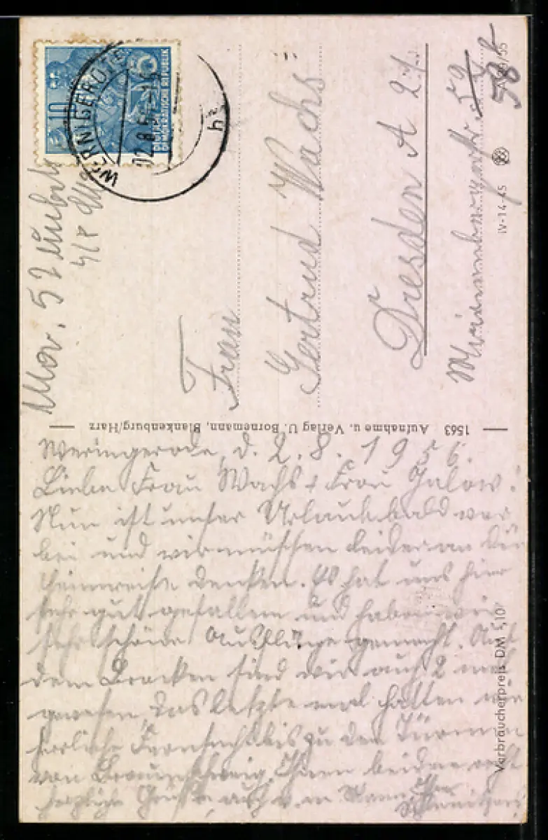 alte Ansichtskarte, gelaufen 1956, guter Zustand
