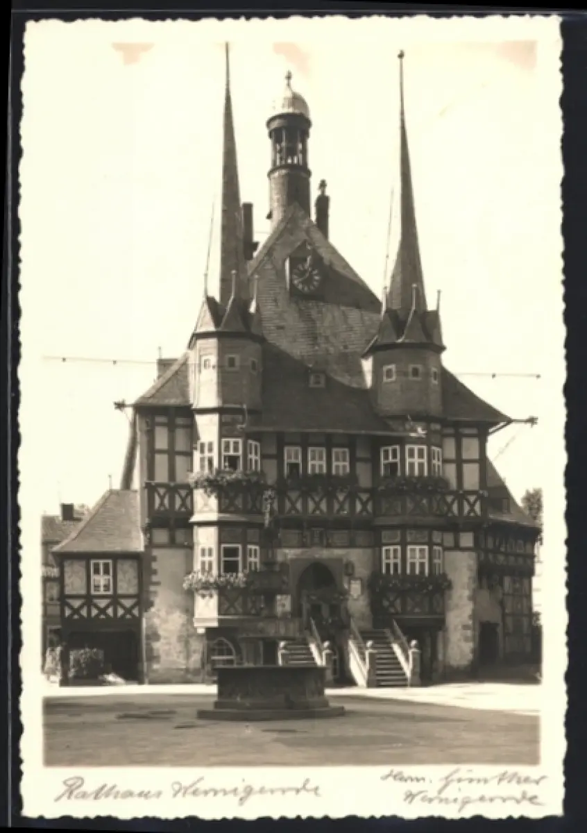 AK Wernigerode, Rathaus mit Brunnen