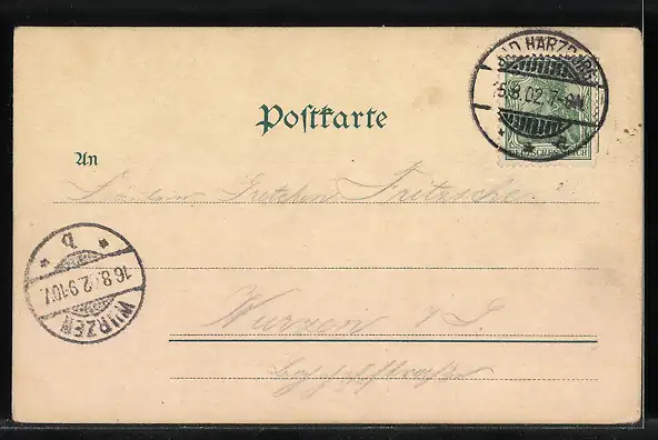 alte Ansichtskarte, gelaufen 1902, Stempelspur, guter Zustand