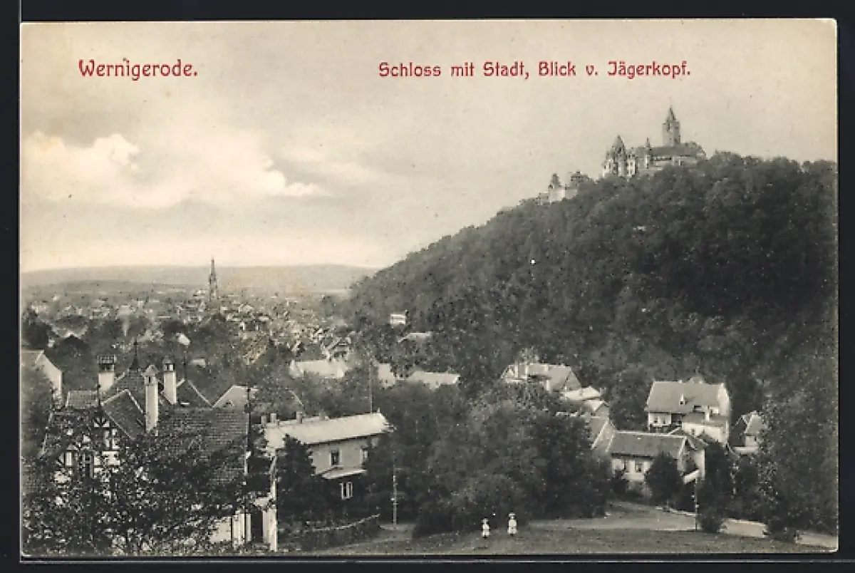 AK Wernigerode, Schloss mit Stadt, Blick vom Jägerkopf