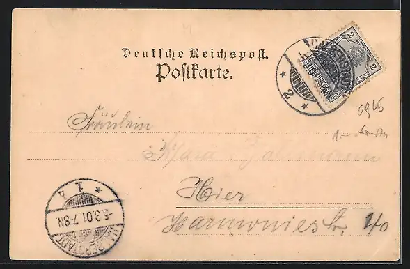 alte Ansichtskarte, gelaufen 1901, guter Zustand