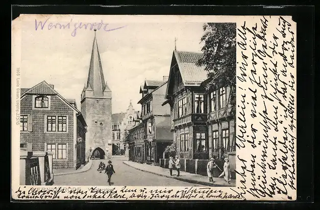 AK Wernigerode, Strassenpartie mit Westerntor