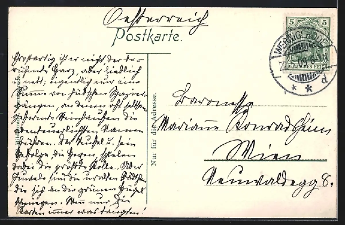 alte Ansichtskarte, gelaufen 1909, guter Zustand