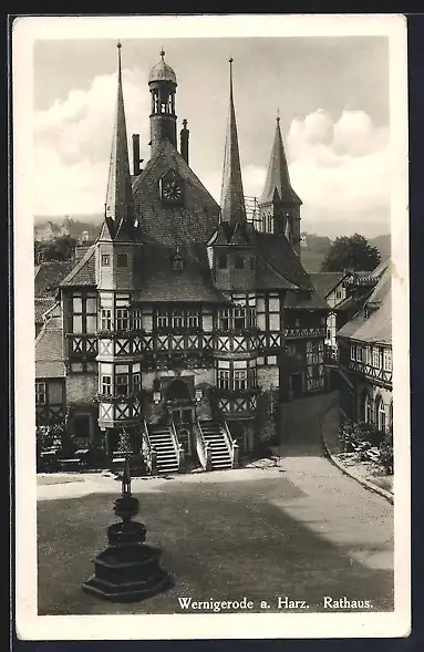AK Wernigerode a. Harz, Rathaus mit Brunnen