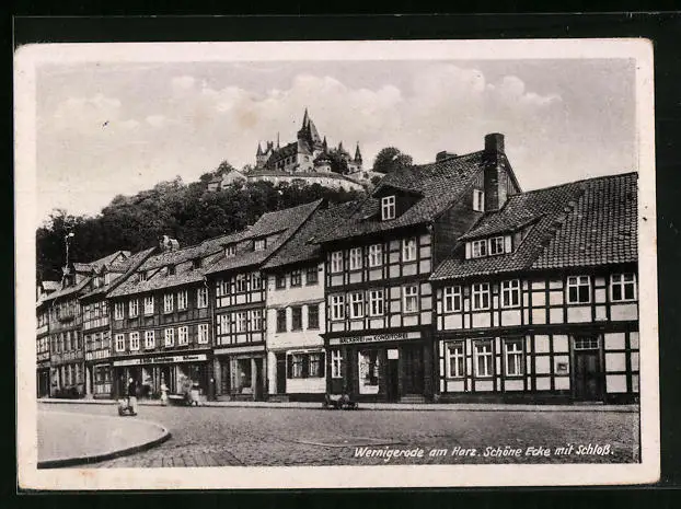 AK Wernigerode am Harz, Schöne Ecke mit Schloss und Bäckerei
