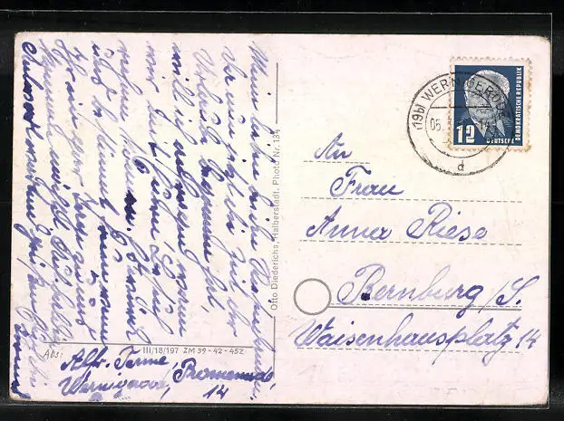 alte Ansichtskarte, gelaufen 1952, guter Zustand