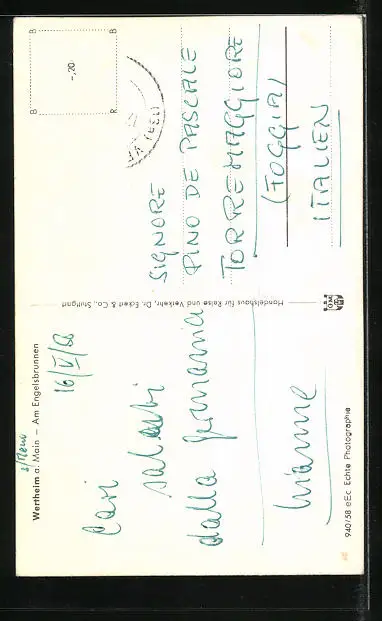alte Ansichtskarte, gelaufen 1958, Briefmarke entfernt, guter Zustand