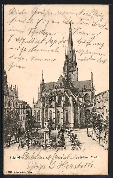 AK Wesel / Rhein, Grosser Markt mit Kirche