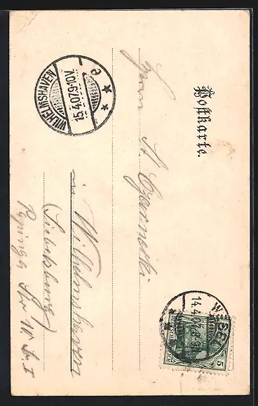 alte Ansichtskarte, gelaufen 1907, Eckknicke oben, guter Zustand