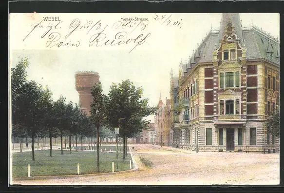 AK Wesel, Strasseneck an der Moltkestrasse, Wasserturm