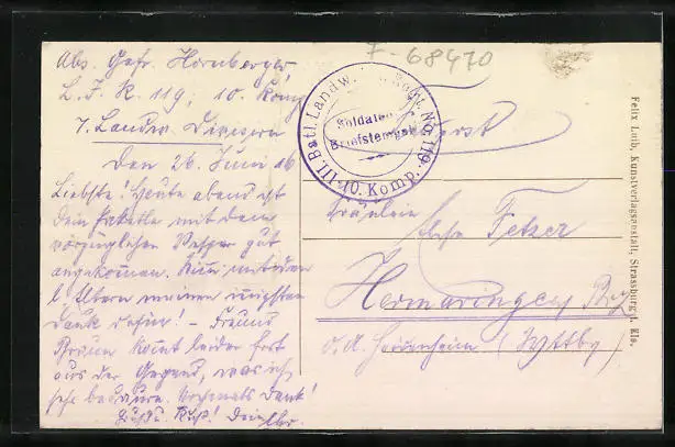 alte Ansichtskarte, gelaufen als Feldpost, guter Zustand