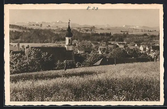 AK Wessobrunn, Ortsansicht mit Gebirgspanorama