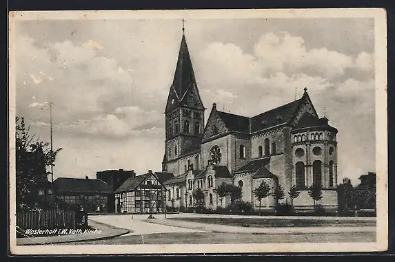 AK Westerholt i. W., Strassenpartie mit Kath. Kirche