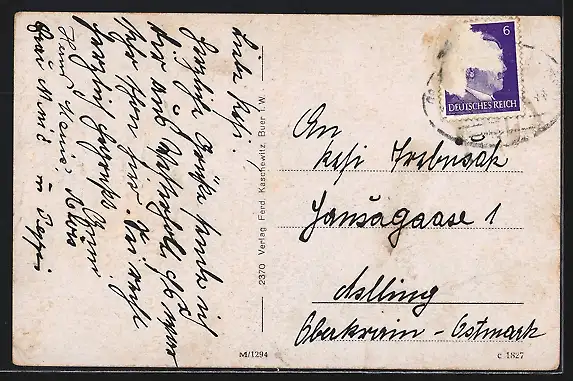 alte Ansichtskarte, gelaufen, Eckknicke li. u. re., Abriebspuren oben li., guter Zustand