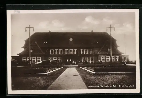 AK Westerland /Sylt, Nordseebad, Reichsbahnhof