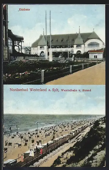AK Westerland /Sylt, Wandelbahn und Strand, Kurhaus